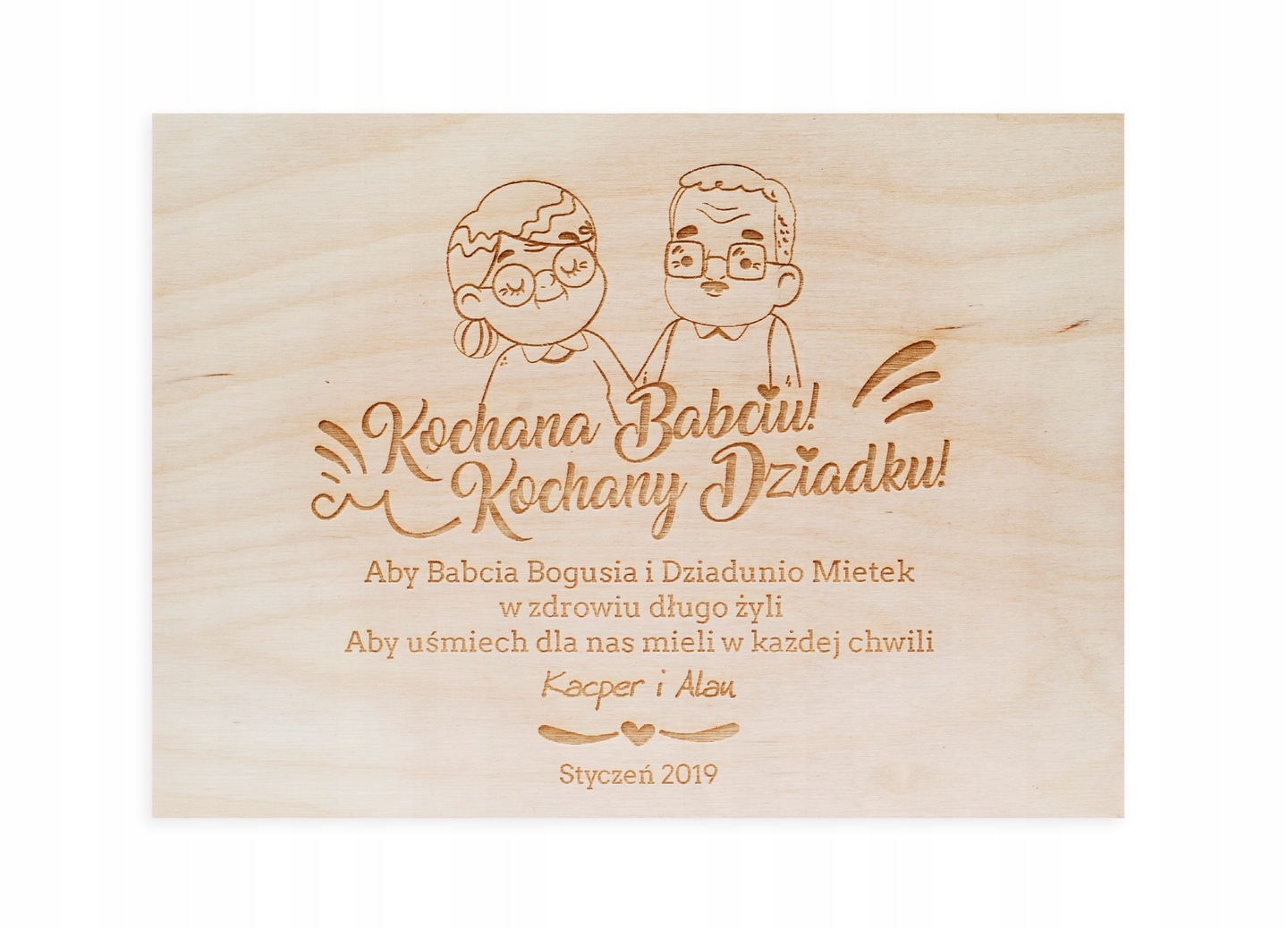 - Na życzenie klienta modyfikujemy teksty - zmieniamy imiona wnuków, imię Babci, Dziadka, wierszyk z życzeniami itp (Grafika nie podlega modyfikacjom)