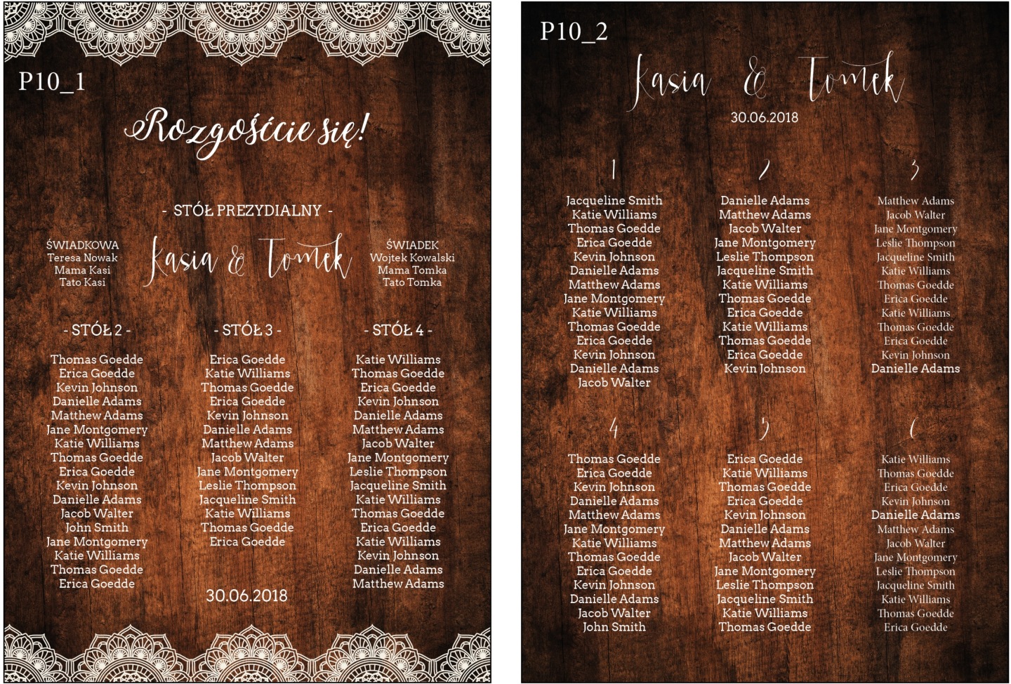 Plany możemy przygotować w formie listy osób i przy danym stoliku lub jako listę gości ułożoną w porządku alfabetycznym z informacją o przypisanym numerze stołu.