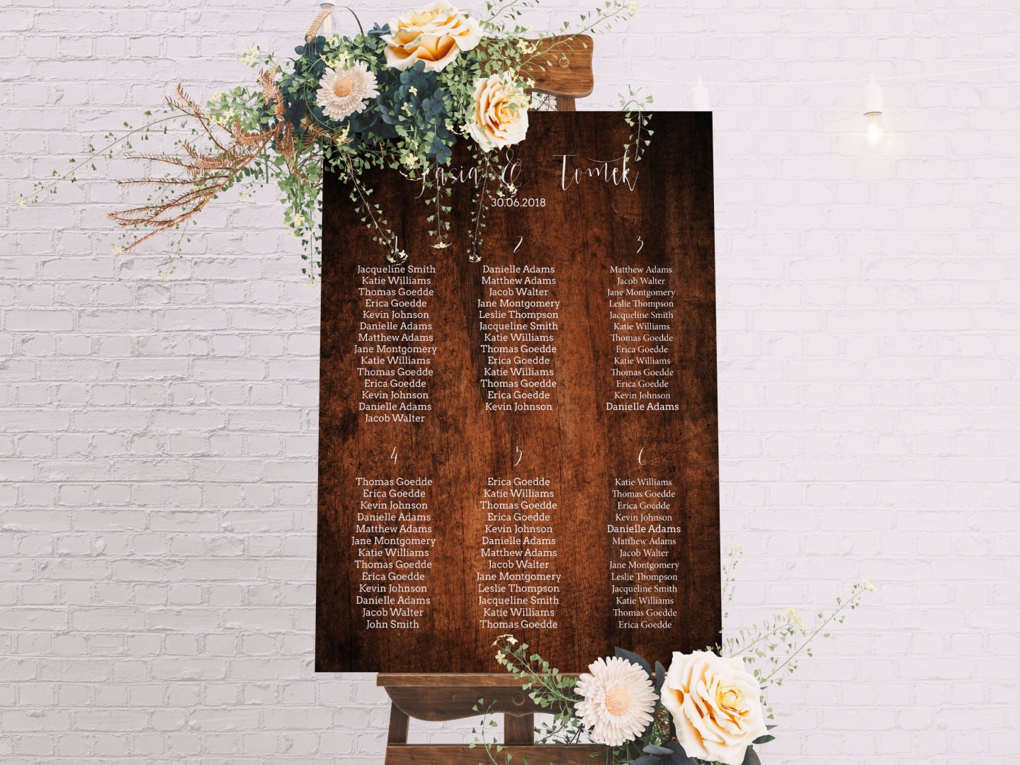 Oryginalna, sztywna i elegancka tablica, na której znajdują się listy gości usadzonych przez Was przy danym stole. Ustawiona przy wejściu pomoże gościom w odnalezieniu swojego miejsca na sali.