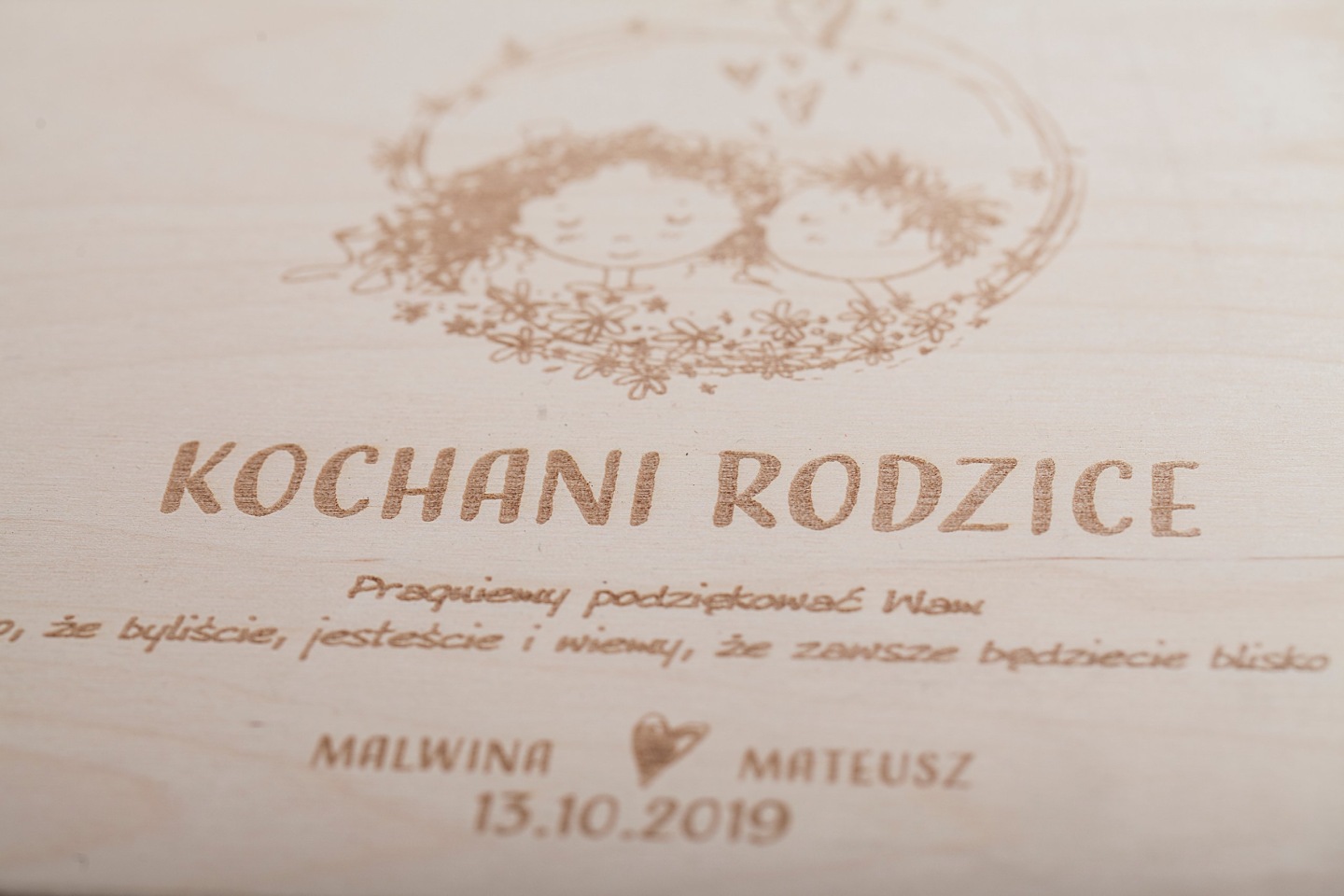 - Wybrany lub własny grawer na zasuwie pudełka