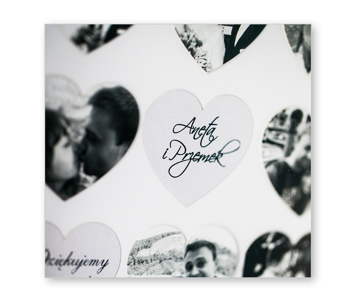 Serca mogą zawierać dowolną konfigurację zdjęć oraz tekstów (daty imiona, inicjały itp.) dzięki czemu produkt zyskuje indywidualny charakter.